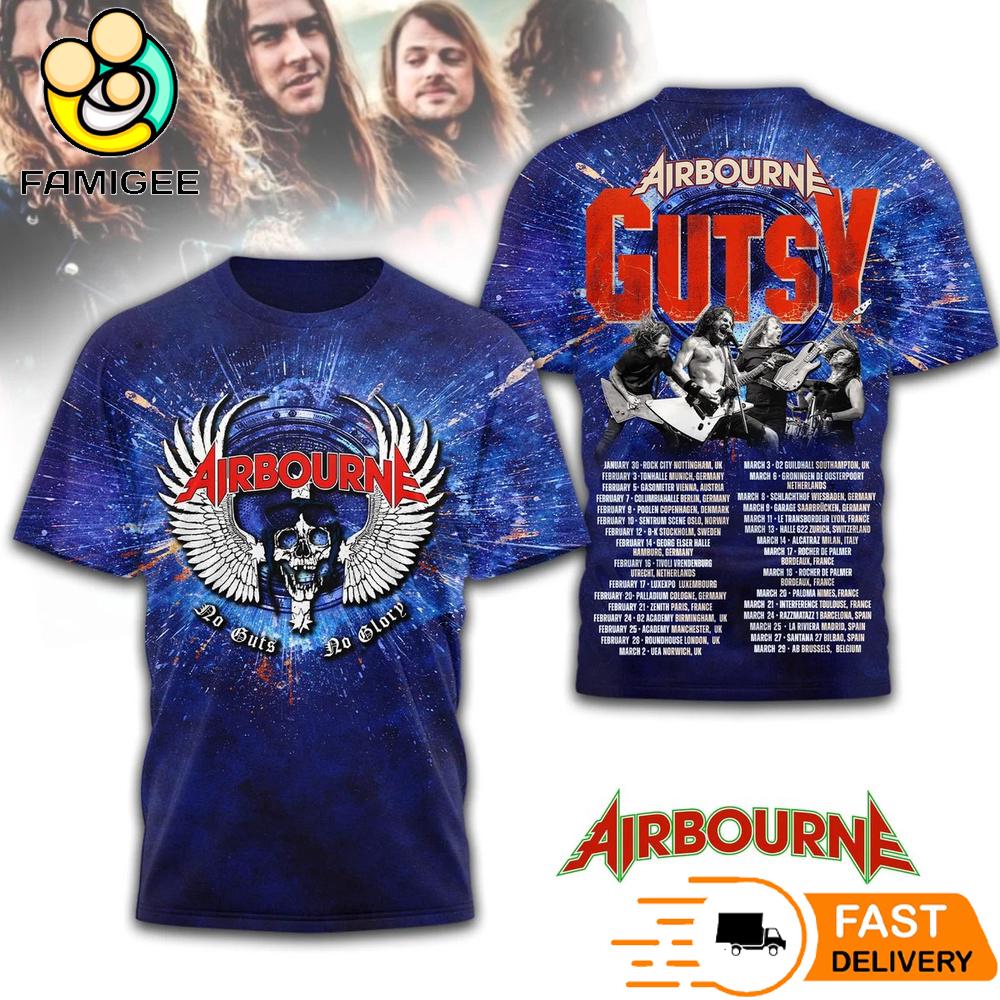 Airbourne Gutsy World Tour Graphic All Over Print T-Shirt Trends come and go, but true style lasts forever. The All Over Print Shirt is made for those who dare to break the mold. Forget about boring, repetitive designs, this is a shirt that speaks your personality: bold, unique, and effortlessly cool.