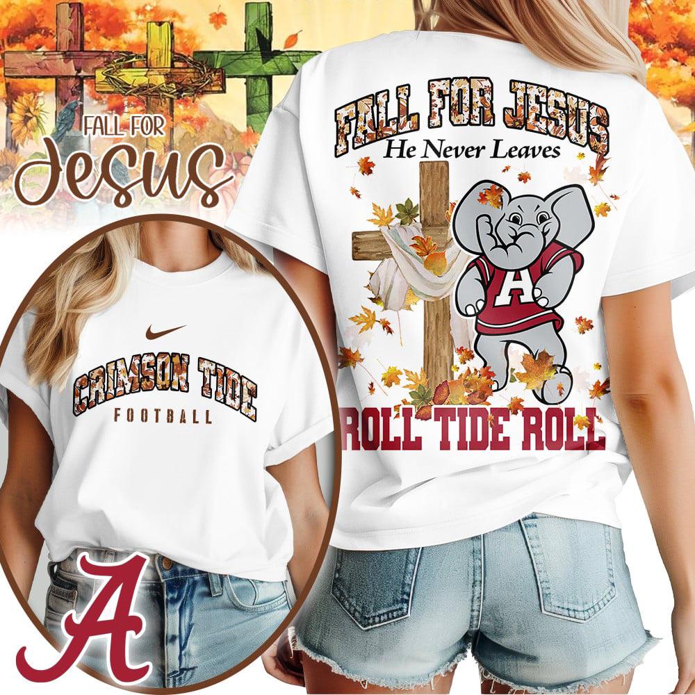 Photos Of Alabama Crimson Tide NCAA Fall For Jesus He Never Leaves 3D Shirt