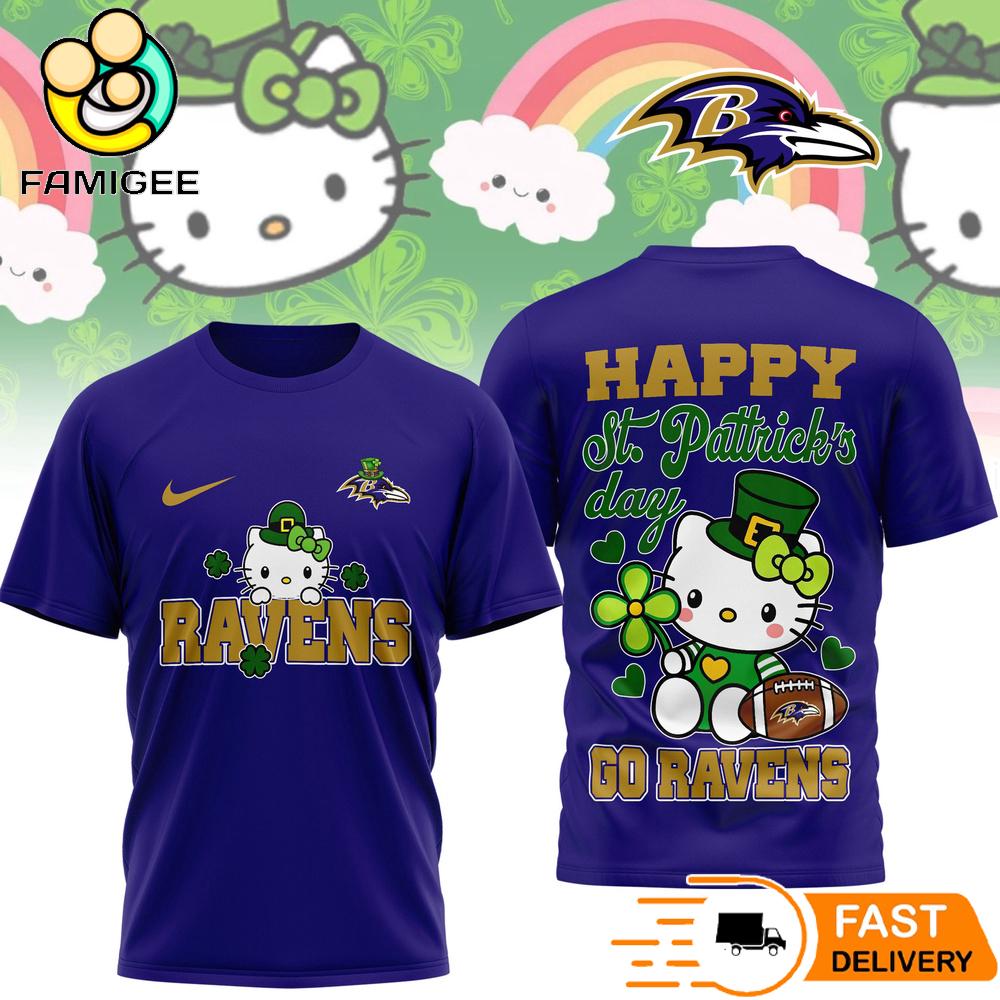Baltimore Ravens Hello Kitty St Patrick Day Limited Edition T-Shirt St. Patrick’s Day is all about color, joy, and showing your personality and this limited edition 3D shirt does exactly that. Designed for fans who love to mix sports passion with playful pop culture, this shirt brings together the excitement of the NFL and the adorable charm of Hello Kitty in one bold, eye-catching design.