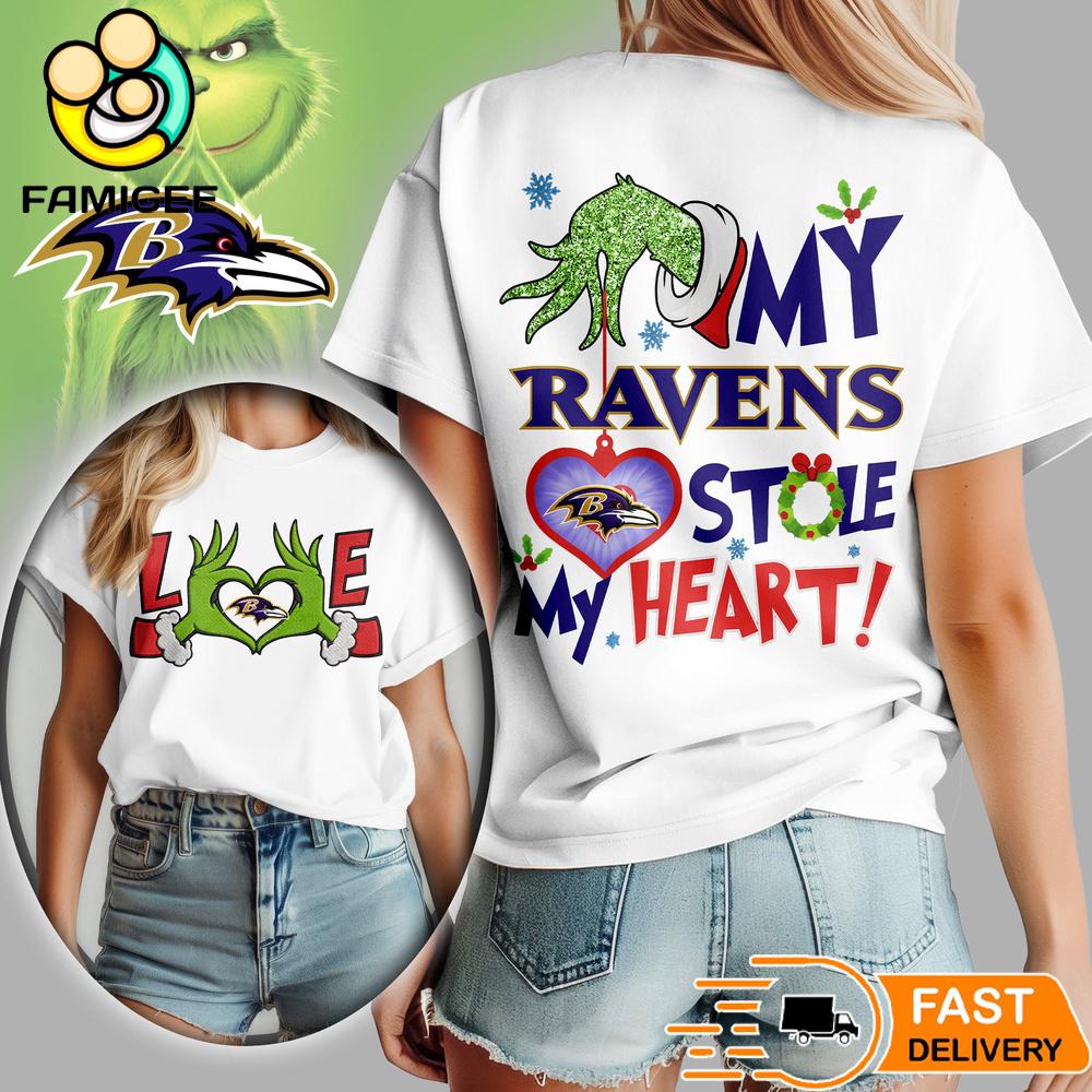 Photos Of Baltimore Ravens NFL Grinch Christmas All Over Print Shirt