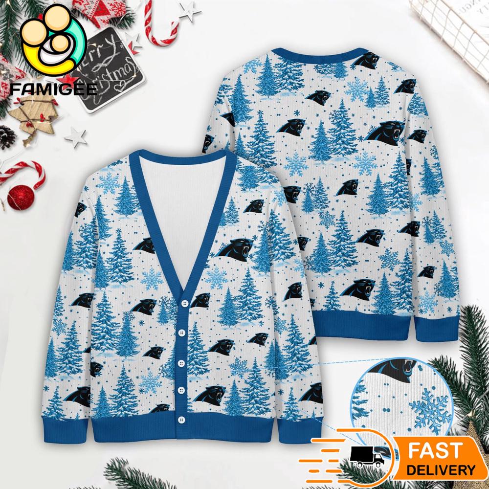 Carolina Panthers NFL Christmas Tree Pattern Cardigan Sweater