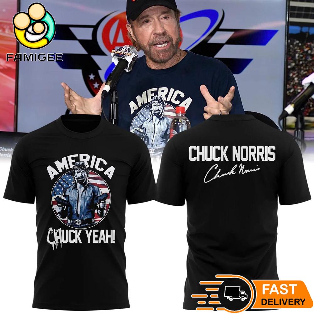 Chuck Norris America Chuck Yeah T-Shirt Patriotic Graphic Fan Tee Trends come and go, but true style lasts forever. The All Over Print Shirt is made for those who dare to break the mold. Forget about boring, repetitive designs, this is a shirt that speaks your personality: bold, unique, and effortlessly cool.