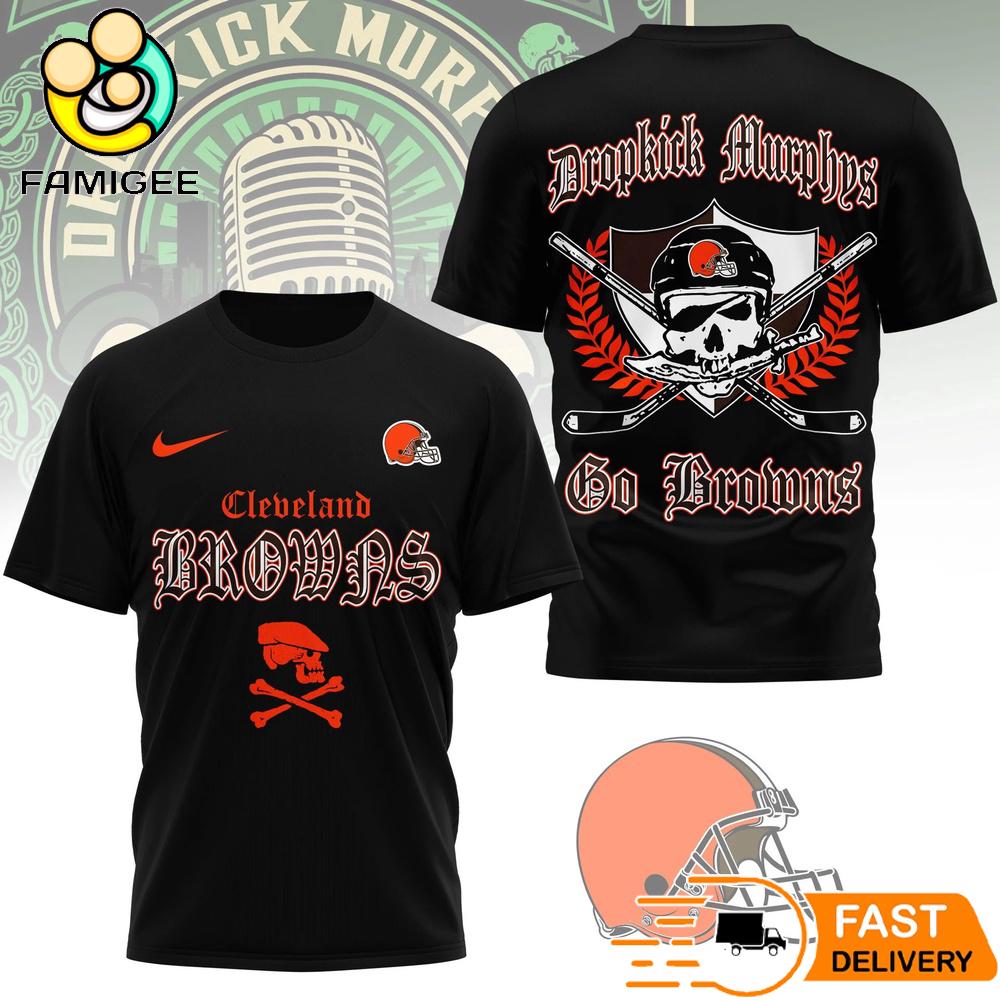 Cleveland Browns Dropkick Murphys Skull T-Shirt Show your passion for football and punk rock culture with this bold crossover design featuring the legendary [thien_display_tags] and iconic Celtic punk band Dropkick Murphys. This unique fan shirt blends the hard hitting energy of the NFL with the rebellious spirit of Boston’s famous punk scene, creating a design that stands out both on game day and in everyday street style.