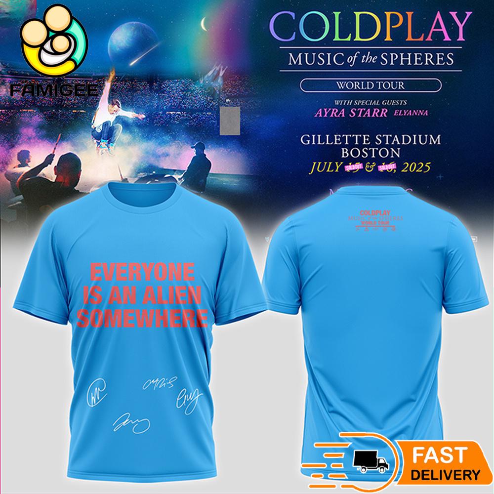 Coldplay Everyone Is An Alien Somewhere Signature 3D T-Shirt Trends come and go, but true style lasts forever. The All Over Print Shirt is made for those who dare to break the mold. Forget about boring, repetitive designs, this is a shirt that speaks your personality: bold, unique, and effortlessly cool.