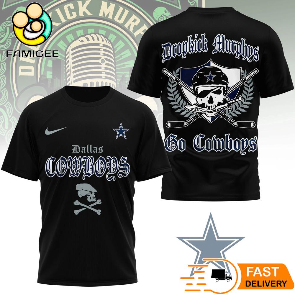 Dallas Cowboys Dropkick Murphys Skull T-Shirt Show your passion for football and punk rock culture with this bold crossover design featuring the legendary [thien_display_tags] and iconic Celtic punk band Dropkick Murphys. This unique fan shirt blends the hard hitting energy of the NFL with the rebellious spirit of Boston’s famous punk scene, creating a design that stands out both on game day and in everyday street style.