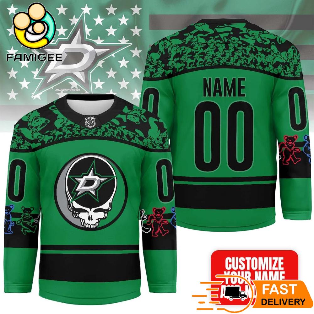 Dallas Stars Grateful Dead Night Custom Name And Number Hockey Jersey Gear up like a true fan with a bold, dynamic Hockey Jersey that brings your passion to life! Featuring striking designs, crisp details, and a comfortable fit, this is the perfect choice for game days, street style, or repping your team anywhere.