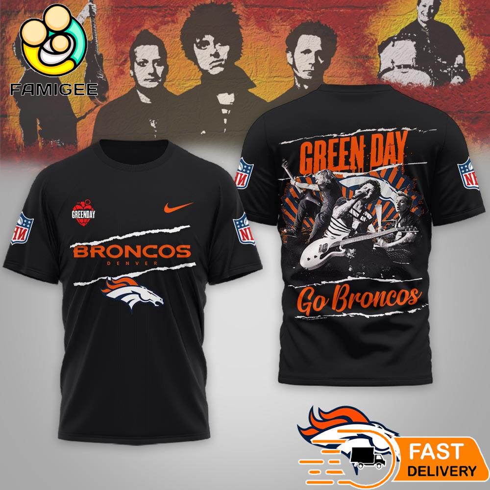 Denver Broncos NFL Green Day Rock Crossover Shirt Where Football Hype Meets Punk Rock Energy.