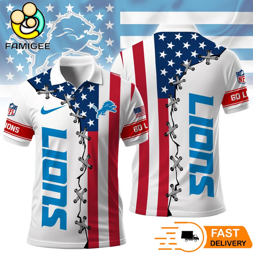 Detroit Lions Independence Day American Flag Polo Shirt designed for passionate fans of the National Football League who want to stand out during the most patriotic time of the year. Inspired by the bold colors of the American flag, this eye catching polo blends team spirit with national pride, making it the perfect outfit for summer celebrations and game day gatherings.