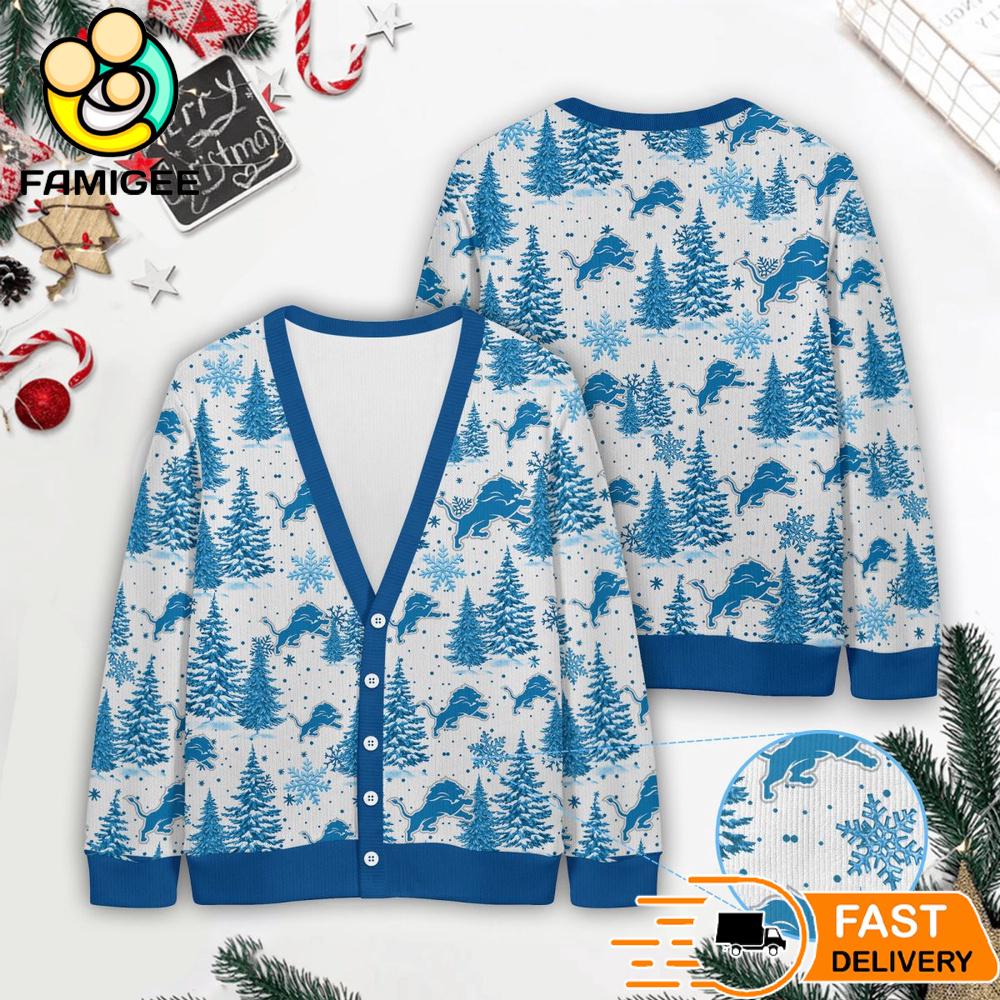 Photos Of Detroit Lions NFL Christmas Tree Pattern Cardigan Sweater