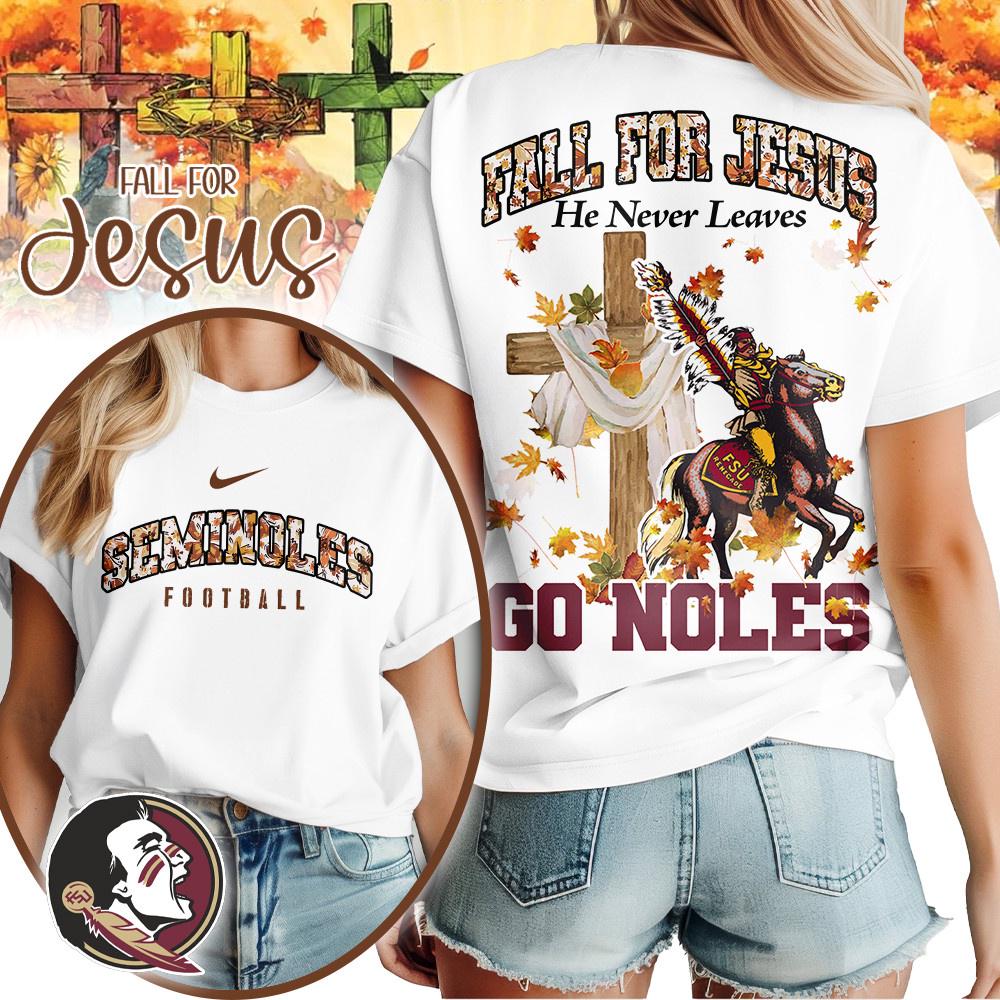 Florida State Seminoles NCAA Fall For Jesus He Never Leaves 3D Shirt Trends come and go, but true style lasts forever. The All Over Print Shirt is made for those who dare to break the mold. Forget about boring, repetitive designs, this is a shirt that speaks your personality: bold, unique, and effortlessly cool.