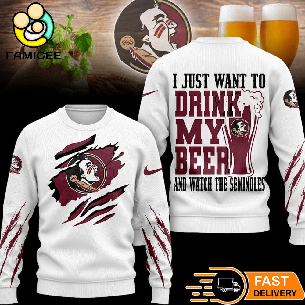 Florida State Seminoles NCAA I Just Want To Drink My Beer And Watch Aggies Ugy Christmas Sweater a must have for the festive season. Designed to bring laughter and joy, this sweater is perfect for Christmas parties, family gatherings, or as a fun holiday gift. With bright colors, eye catching patterns, and a comfortable fit, it’s the ultimate way to show off your Christmas cheer. Whether you’re joining an ugly sweater contest or just want to spread some festive vibes, this piece will make you stand out in the best way. Celebrate the holidays with a sweater that’s cozy, stylish, and full of Christmas fun.
