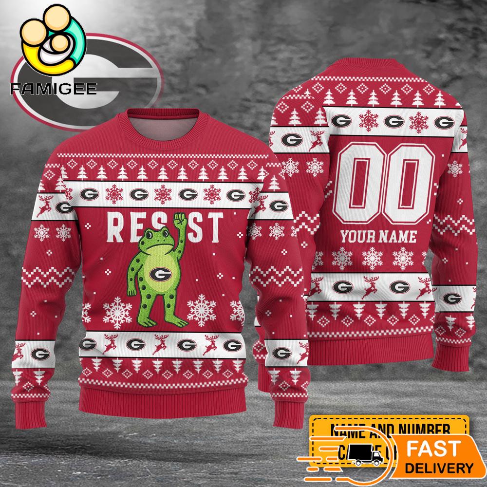 Georgia Bulldogs NCAA Resist Frog Ugly Christmas Sweater a must have for the festive season. Designed to bring laughter and joy, this sweater is perfect for Christmas parties, family gatherings, or as a fun holiday gift. With bright colors, eye catching patterns, and a comfortable fit, it’s the ultimate way to show off your Christmas cheer. Whether you’re joining an ugly sweater contest or just want to spread some festive vibes, this piece will make you stand out in the best way. Celebrate the holidays with a sweater that’s cozy, stylish, and full of Christmas fun.