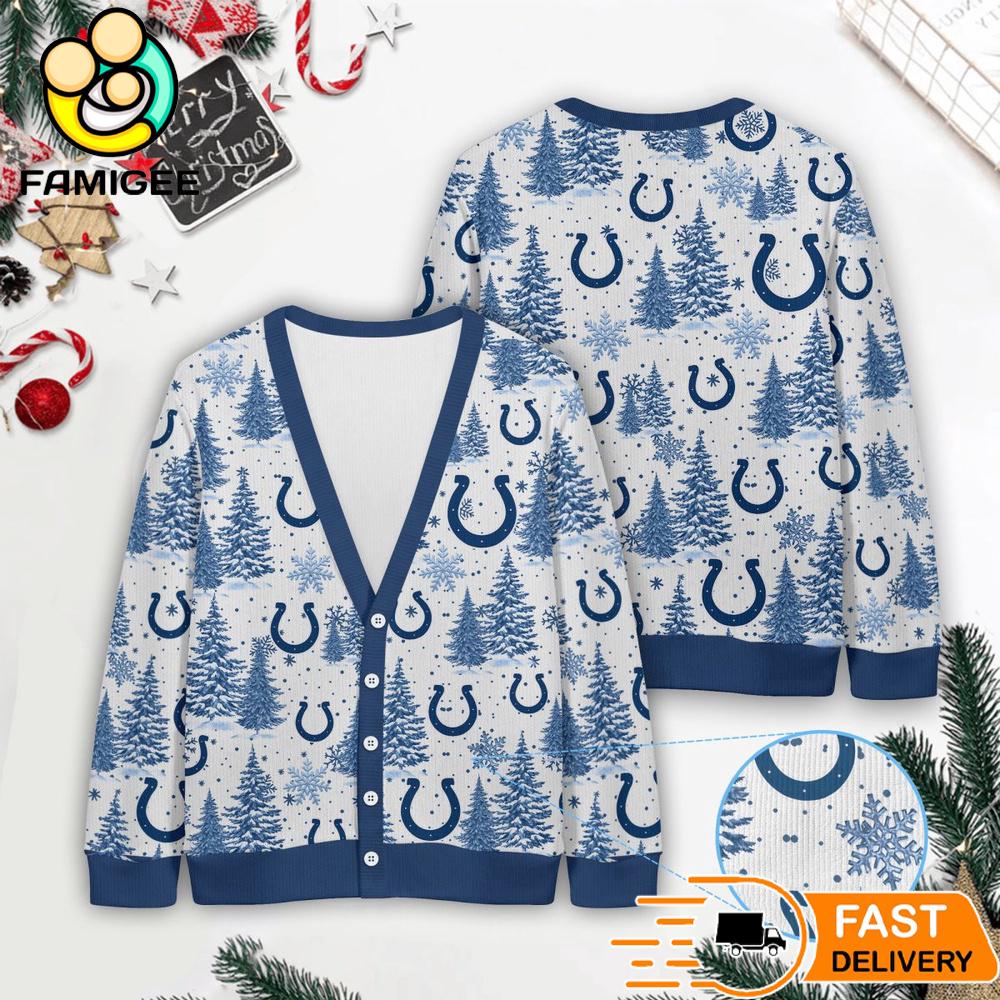 Indianapolis Colts NFL Christmas Tree Pattern Cardigan Sweater