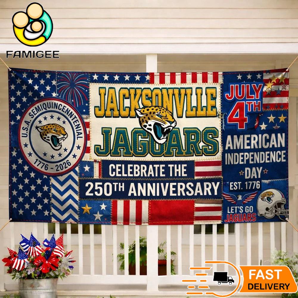 Jacksonville Jaguars Celebrate The 250Th Anniversary America Decoration Banner Show off your team pride and patriotic spirit with this bold Jacksonville Jaguars Decoration Banner, designed to celebrate the historic 250th Anniversary of American Independence (1776–2026). Inspired by the energy of Jacksonville Jaguars and the iconic celebration of Independence Day, this banner combines sports passion with classic red, white, and blue style.