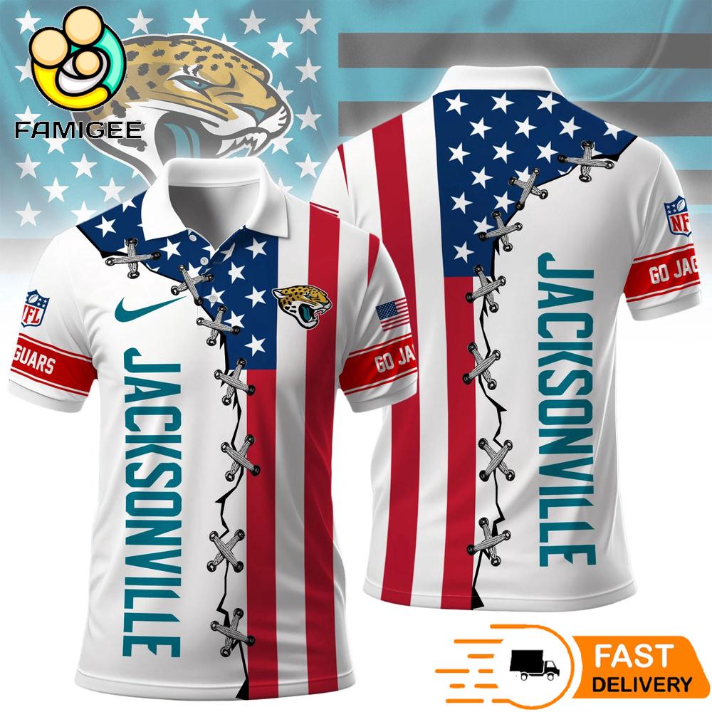 Jacksonville Jaguars Independence Day American Flag Polo Shirt designed for passionate fans of the National Football League who want to stand out during the most patriotic time of the year. Inspired by the bold colors of the American flag, this eye catching polo blends team spirit with national pride, making it the perfect outfit for summer celebrations and game day gatherings.