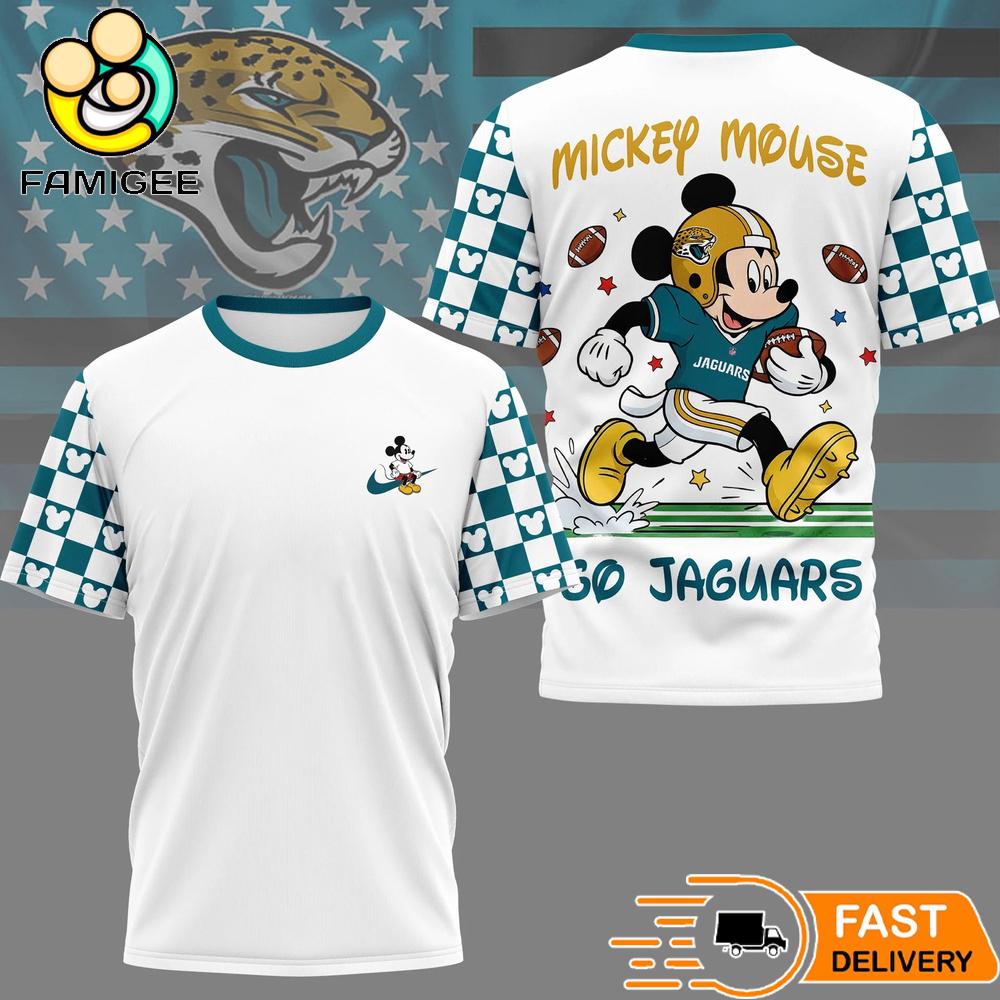 Jacksonville Jaguars Mickey Mouse Football Celebrating 2026 T-Shirt a perfect combination of classic cartoon charm and passionate football fandom. Inspired by the beloved character Mickey Mouse and the bold colors of the [thien_display_tags], this shirt brings a fun and energetic vibe to any game day outfit.