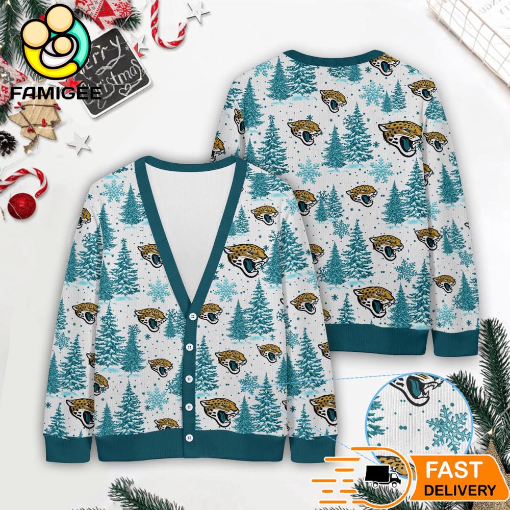 Jacksonville Jaguars NFL Christmas Tree Pattern Cardigan Sweater