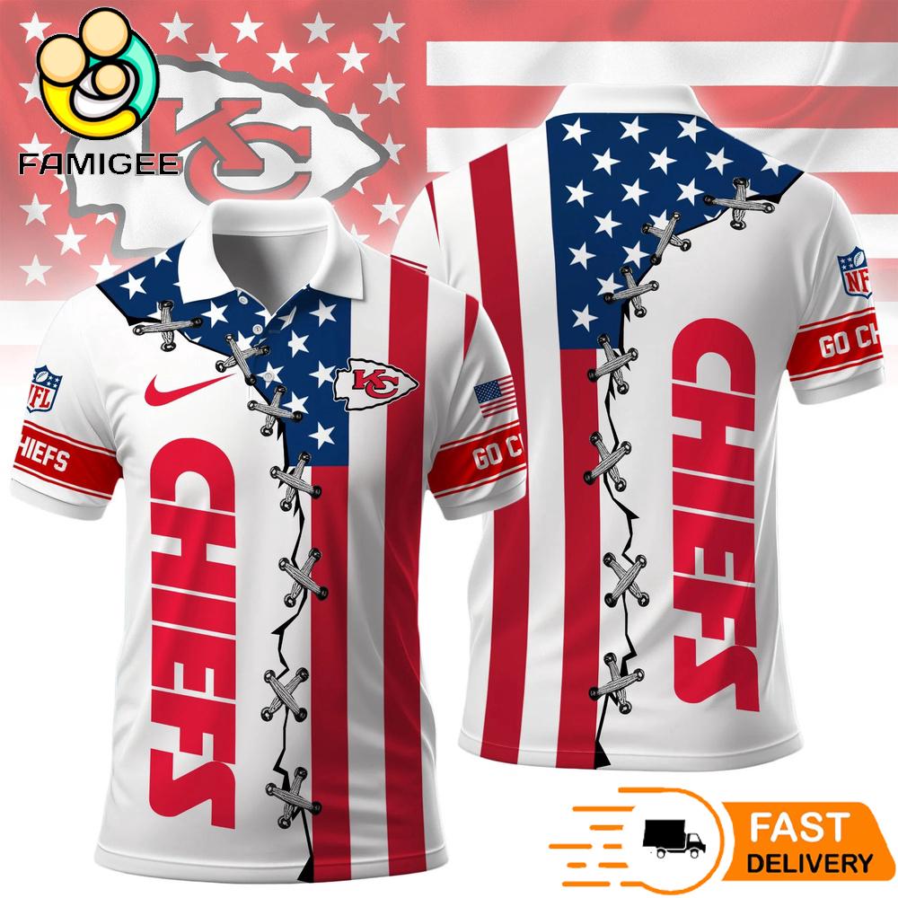 Photos Of Kansas City Chiefs Independence Day American Flag Polo Shirt