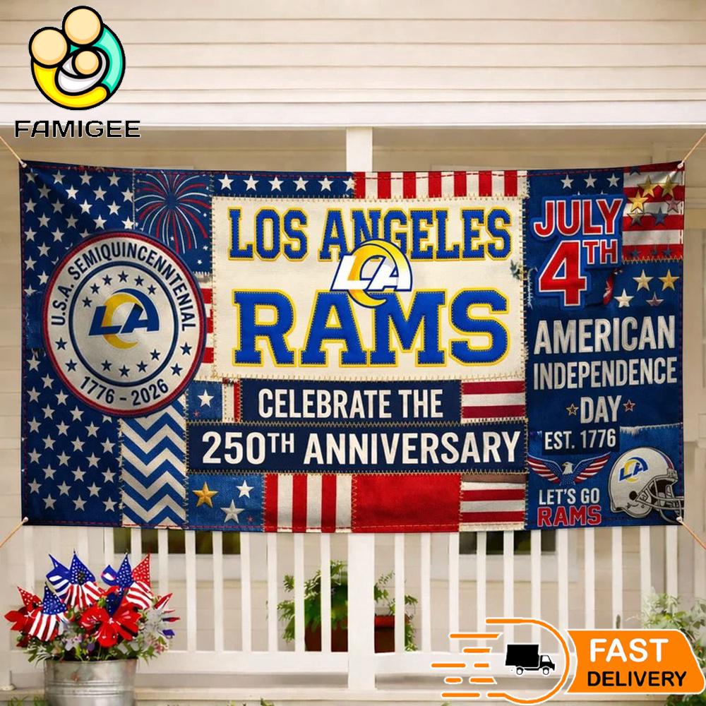 Los Angeles Rams Celebrate The 250Th Anniversary America Decoration Banner Show off your team pride and patriotic spirit with this bold Los Angeles Rams Decoration Banner, designed to celebrate the historic 250th Anniversary of American Independence (1776–2026). Inspired by the energy of Los Angeles Rams and the iconic celebration of Independence Day, this banner combines sports passion with classic red, white, and blue style.