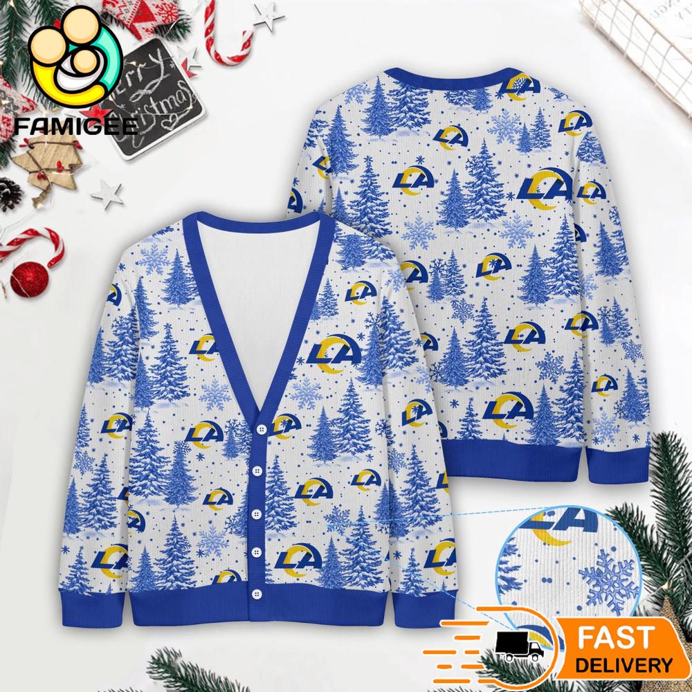 Los Angeles Rams NFL Christmas Tree Pattern Cardigan Sweater
