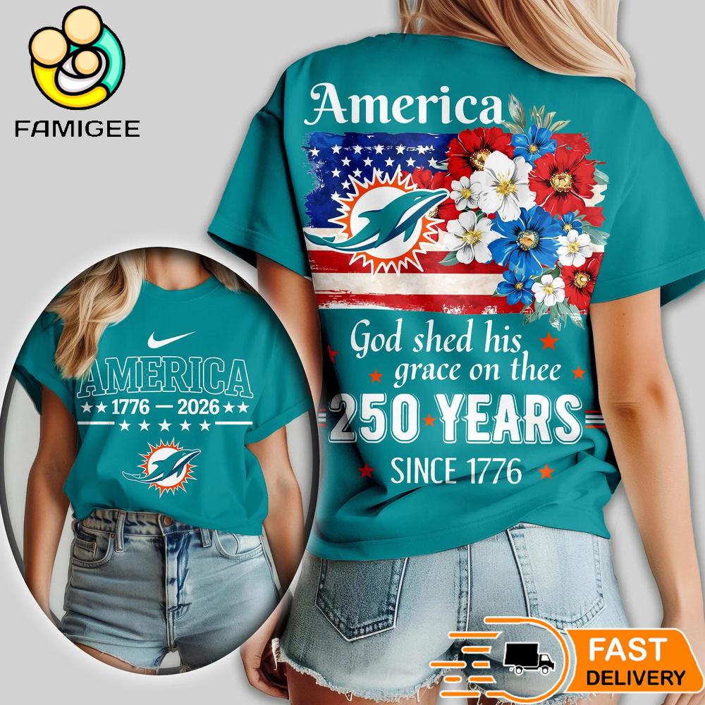 Miami Dolphins NFL America The Beautiful 250 Years 3D Shirt Celebrate 250 Years of America with this NFL fan design that blends patriotic pride with football passion. Featuring American heritage graphics mixed with team spirit, this shirt is perfect for game day, national holidays, and everyday wear. A bold choice for fans who love both country and NFL culture.