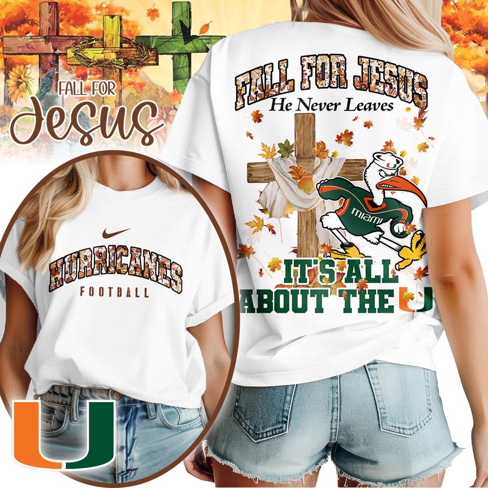 Photos Of Miami Hurricanes NCAA Fall For Jesus He Never Leaves 3D Shirt
