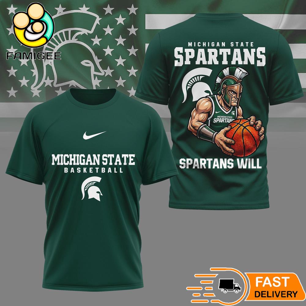 Michigan State Spartans NCAA Mascot Slam Shot 3D Basketball Shirt Get ready for NCAA Game Day 2025 with this bold 3D T Shirt made for true college sports fans. The dynamic 3D design brings team colors and action inspired graphics to life, giving you a strong game day look from every angle.
