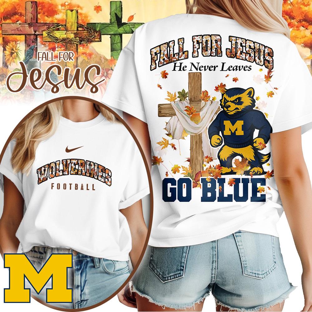Photos Of Michigan Wolverines NCAA Fall For Jesus He Never Leaves 3D Shirt