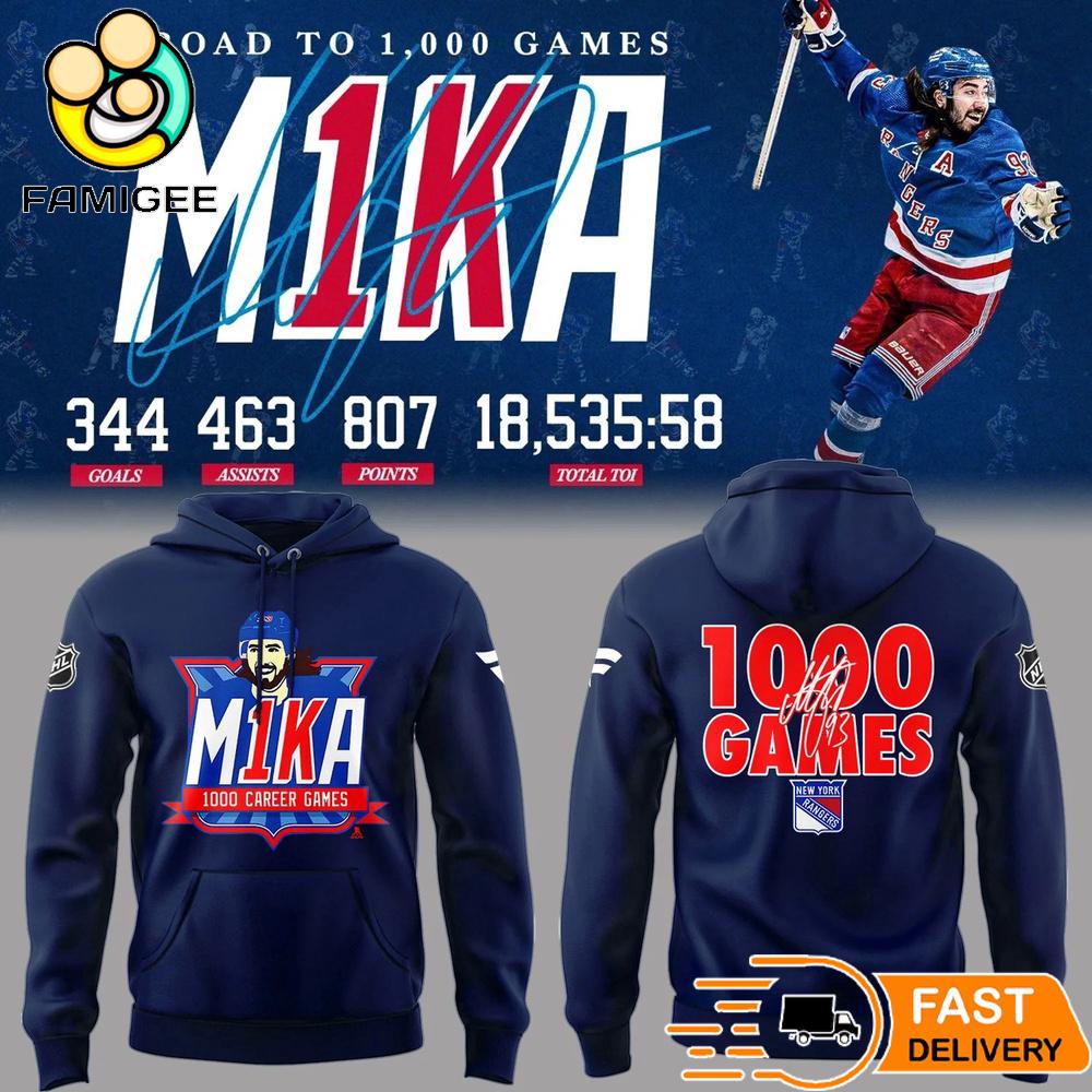Photos Of Mika Zibanejad Road to 1000 Games Hoodie New York Rangers NHL Fan Hoodie