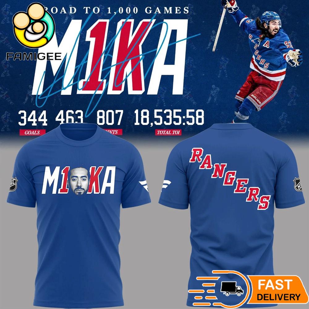 Mika Zibanejad Road to 1000 Games T-Shirt New York Rangers NHL Fan Tee Trends come and go, but true style lasts forever. The All Over Print Shirt is made for those who dare to break the mold. Forget about boring, repetitive designs, this is a shirt that speaks your personality: bold, unique, and effortlessly cool.