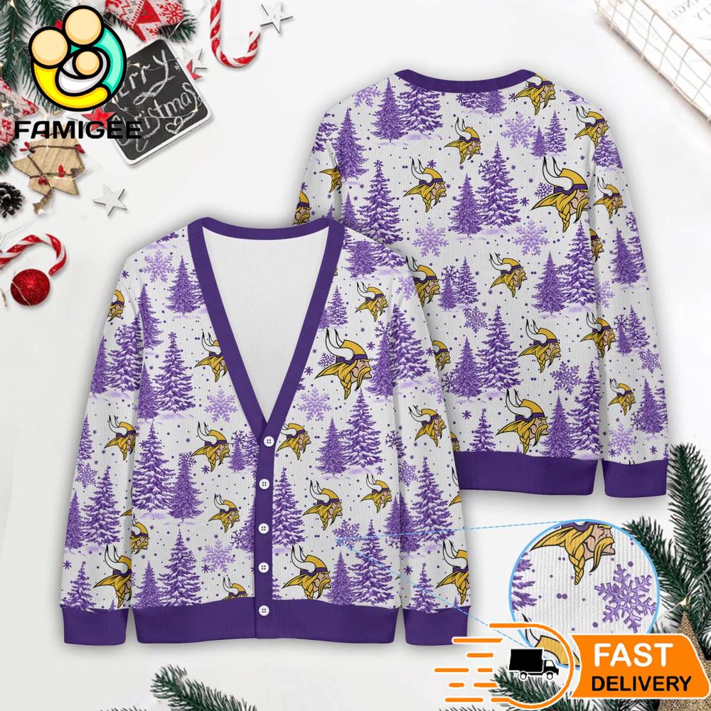 Minnesota Vikings NFL Christmas Tree Pattern Cardigan Sweater