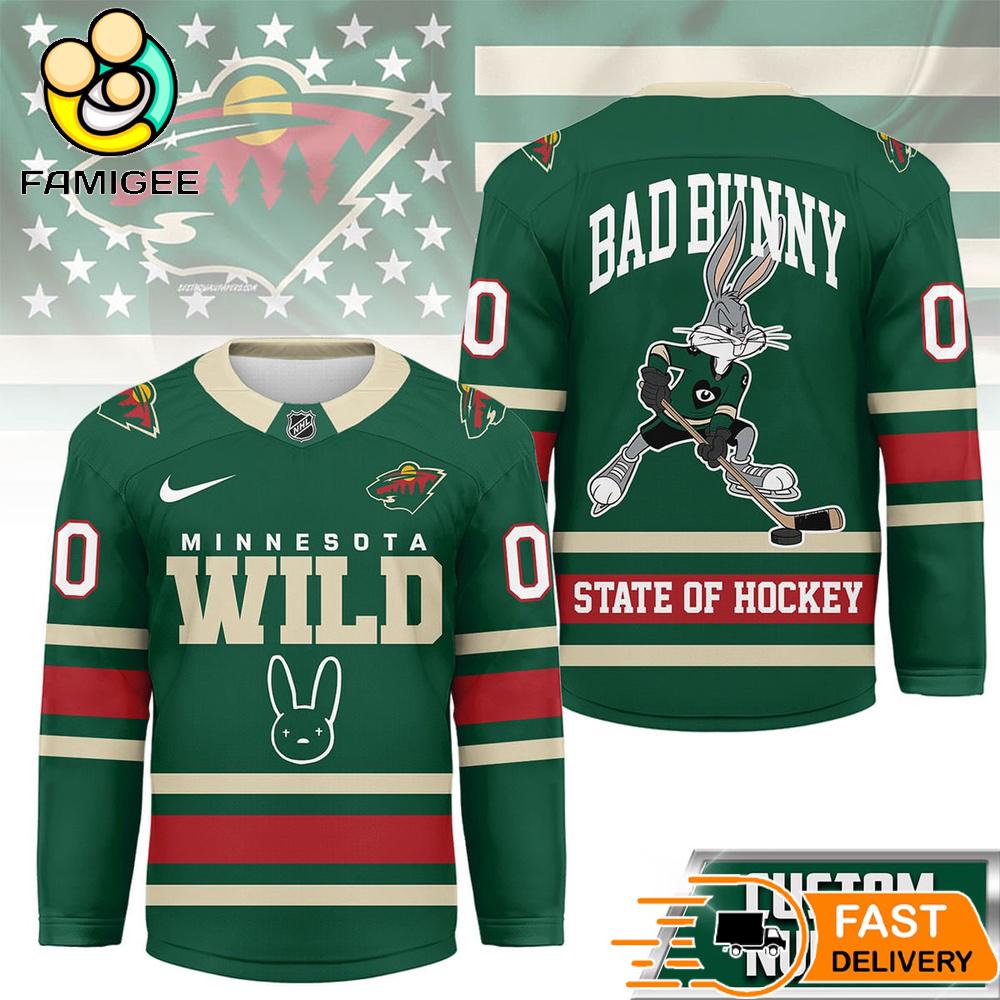 Minnesota Wild NHL Bad Bunny Hockey Jersey The NHL Custom Bunny Hockey Jersey brings a bold twist to classic hockey style. Featuring official team-inspired colors combined with a playful bunny graphic, this jersey is designed for fans who want to stand out while still showing true team pride.