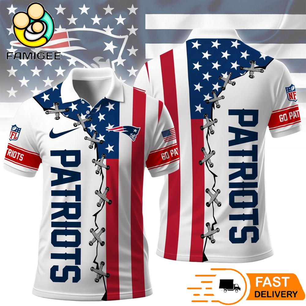 New England Patriots Independence Day American Flag Polo Shirt designed for passionate fans of the National Football League who want to stand out during the most patriotic time of the year. Inspired by the bold colors of the American flag, this eye catching polo blends team spirit with national pride, making it the perfect outfit for summer celebrations and game day gatherings.