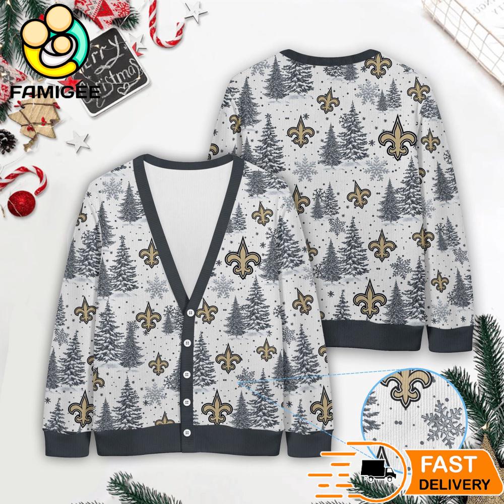New Orleans Saints NFL Christmas Tree Pattern Cardigan Sweater