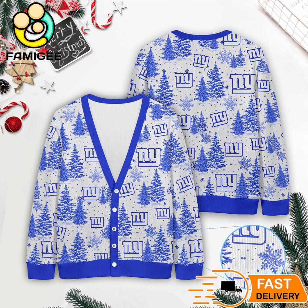 New York Giants NFL Christmas Tree Pattern Cardigan Sweater