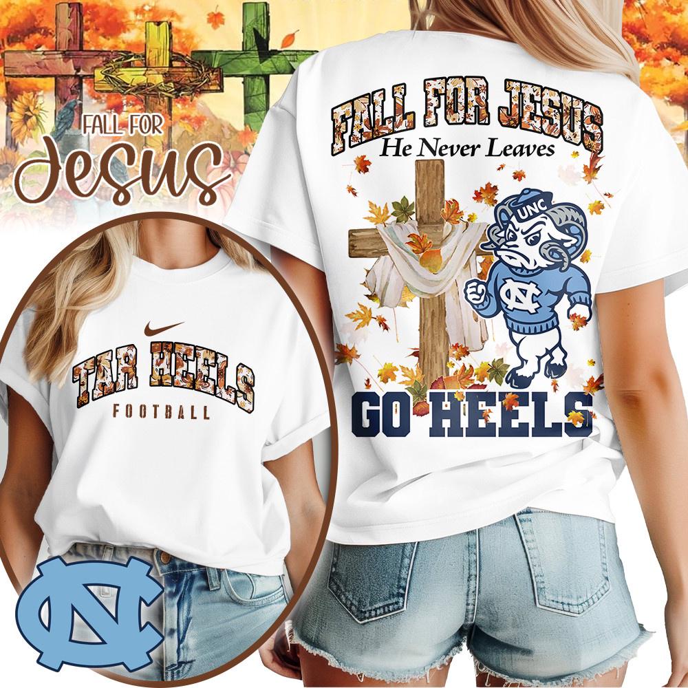 Photos Of North Carolina Tar Heels NCAA Fall For Jesus He Never Leaves 3D Shirt