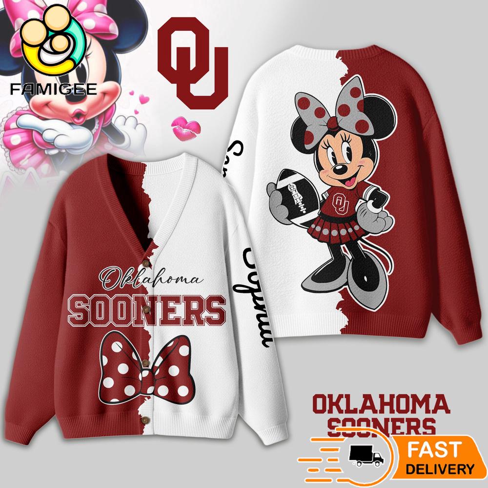 Oklahoma Sooners Minnie Inspired Bow Cartoon Custom Name Cardigan Sweater