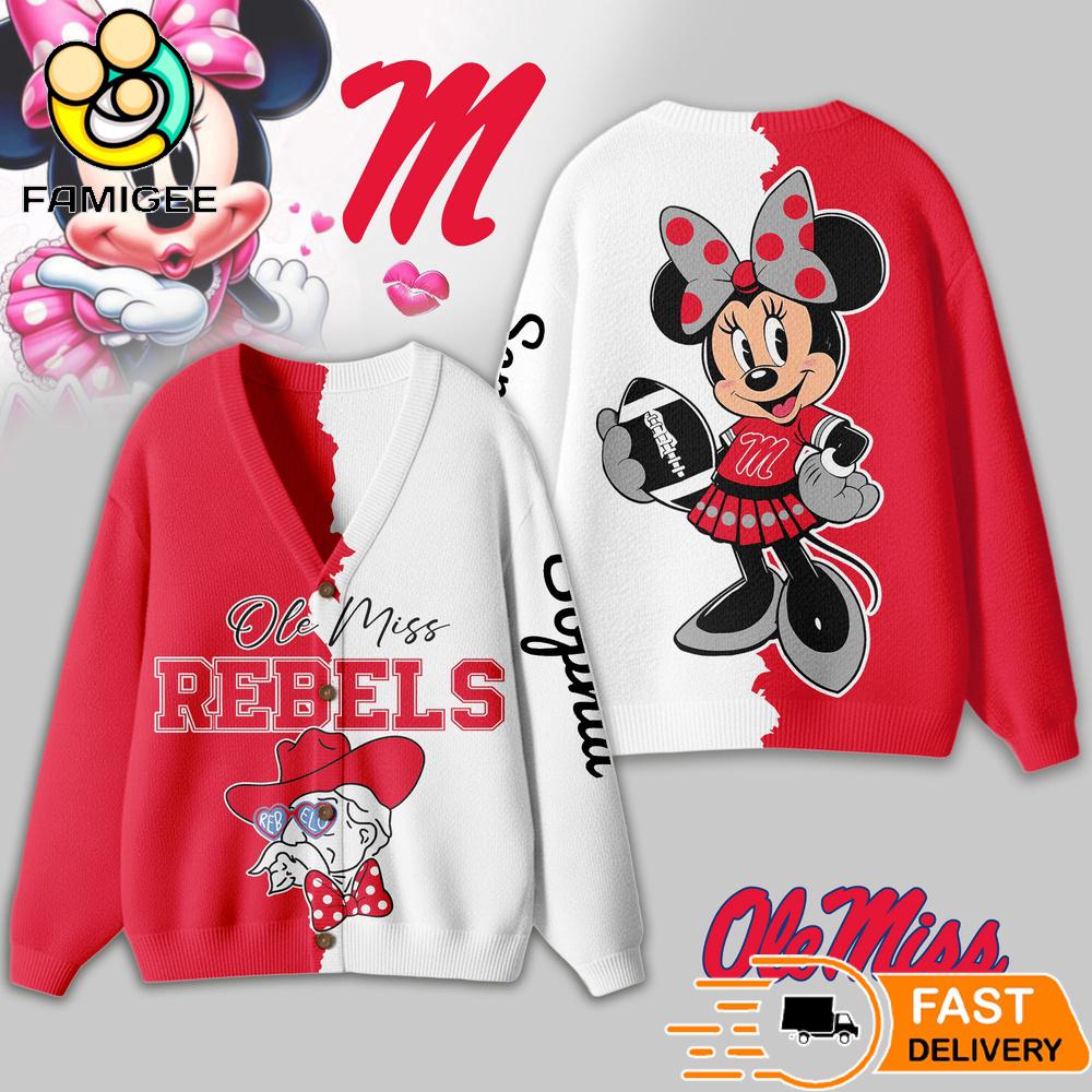 Ole Miss Rebels Minnie Inspired Bow Cartoon Custom Name Cardigan Sweater