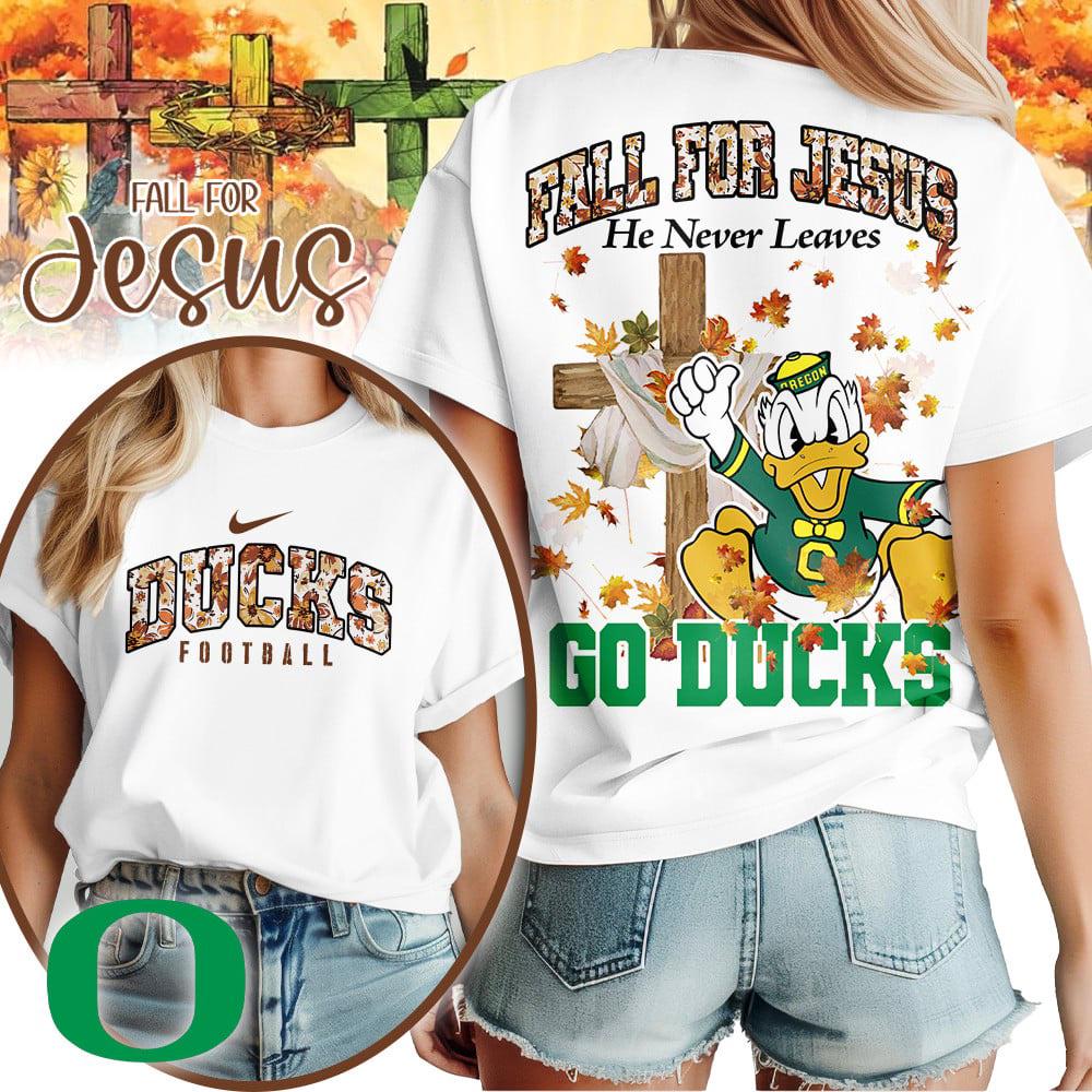 Photos Of Oregon Ducks NCAA Fall For Jesus He Never Leaves 3D Shirt