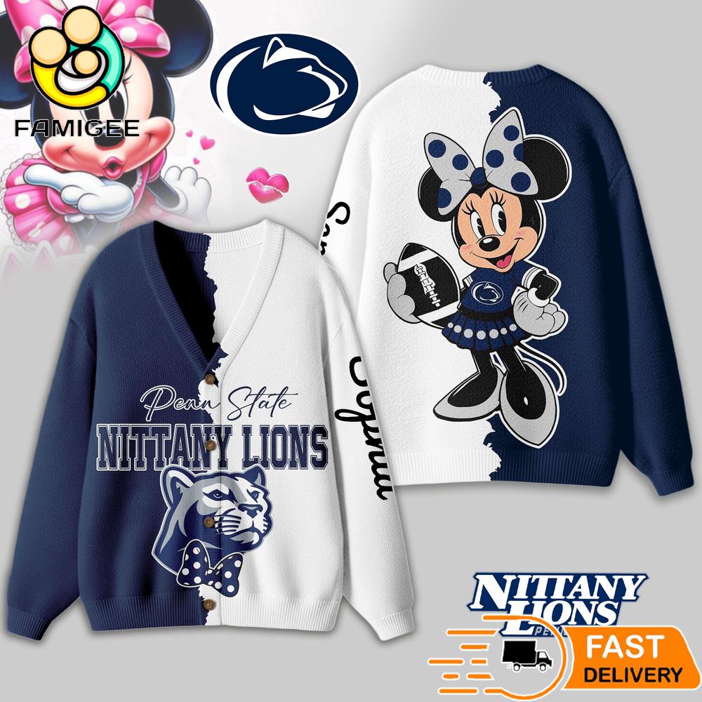 Penn State Nittany Lions Minnie Inspired Bow Cartoon Custom Name Cardigan Sweater