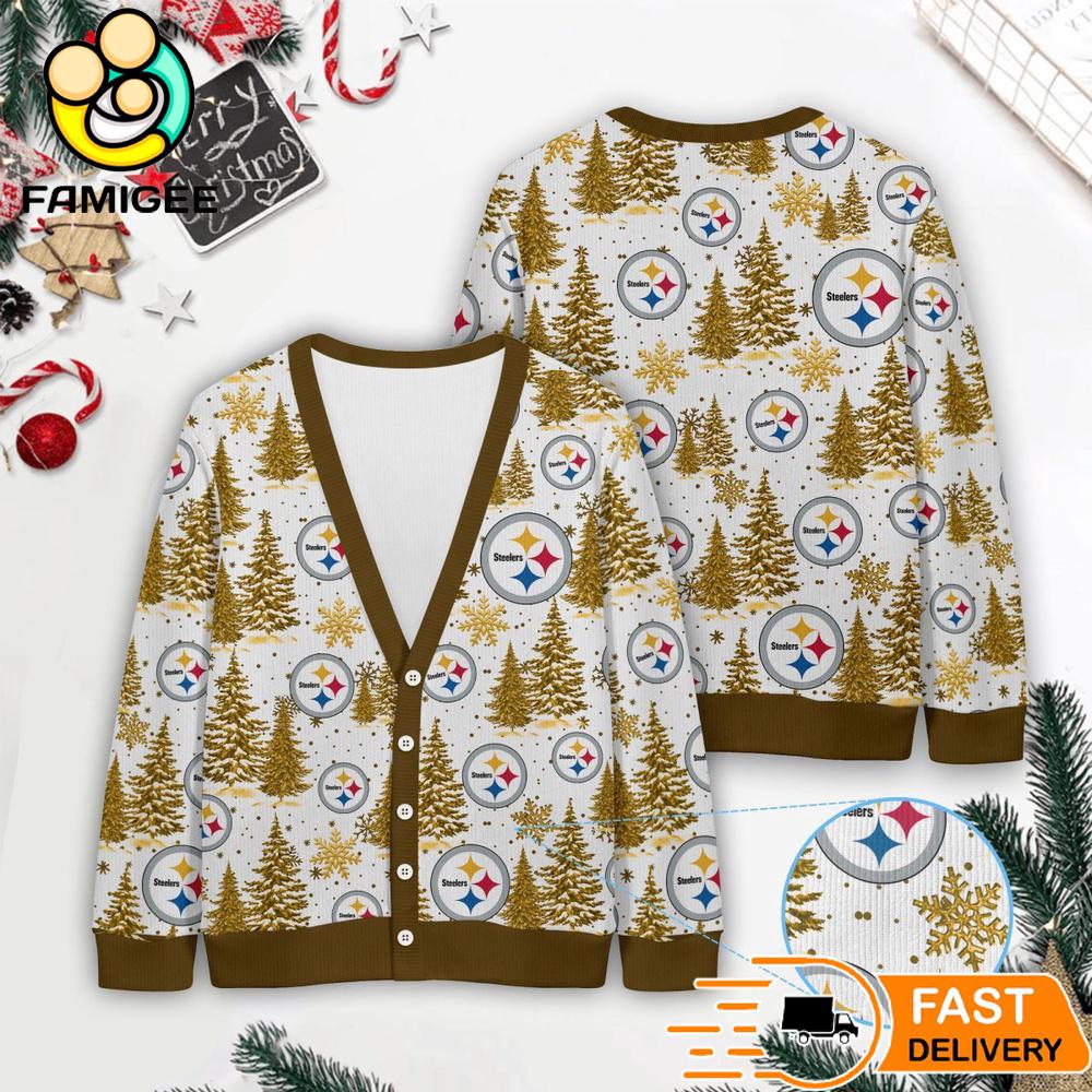 Pittsburgh Steelers NFL Christmas Tree Pattern Cardigan Sweater