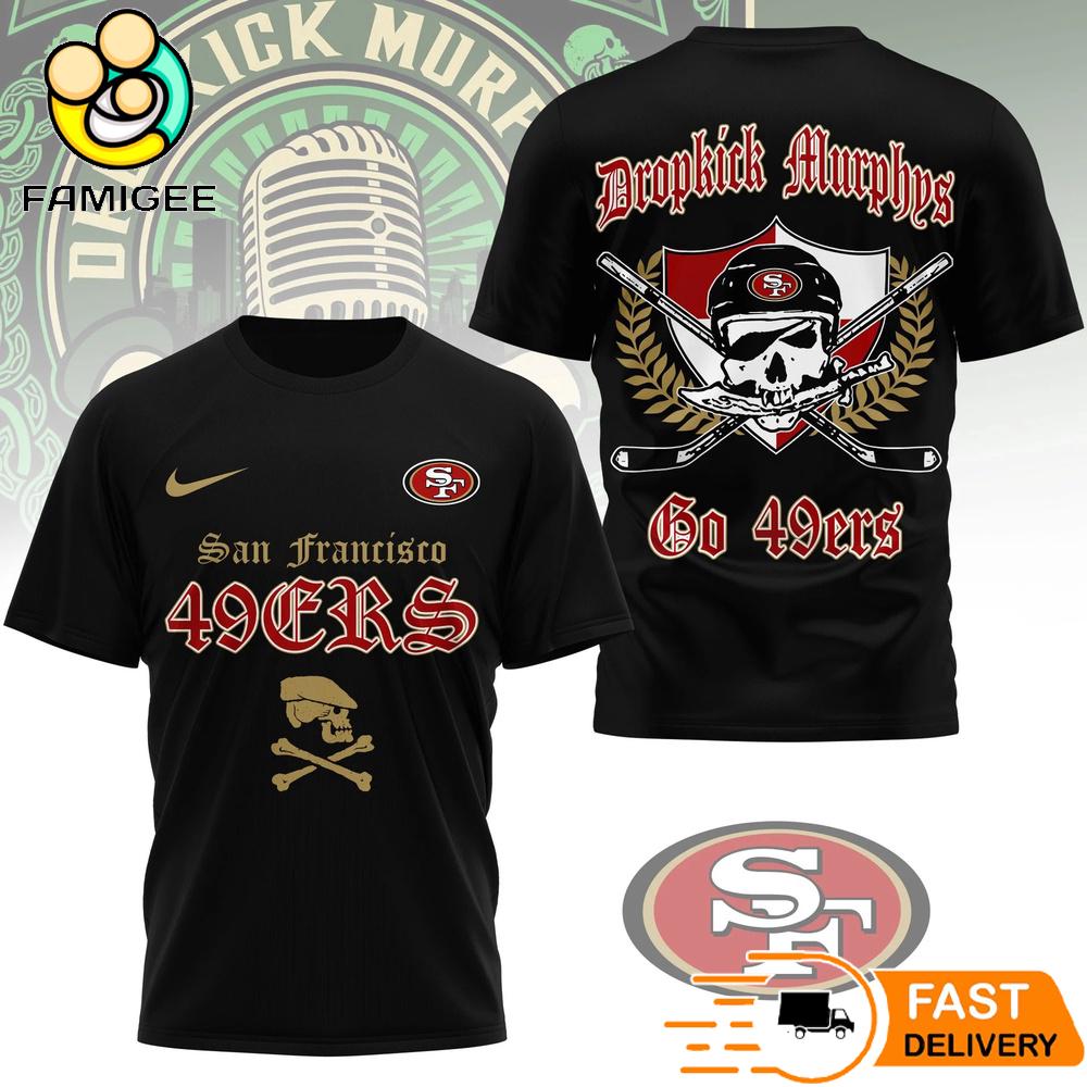 San Francisco 49ers Dropkick Murphys Skull T-Shirt Show your passion for football and punk rock culture with this bold crossover design featuring the legendary [thien_display_tags] and iconic Celtic punk band Dropkick Murphys. This unique fan shirt blends the hard hitting energy of the NFL with the rebellious spirit of Boston’s famous punk scene, creating a design that stands out both on game day and in everyday street style.