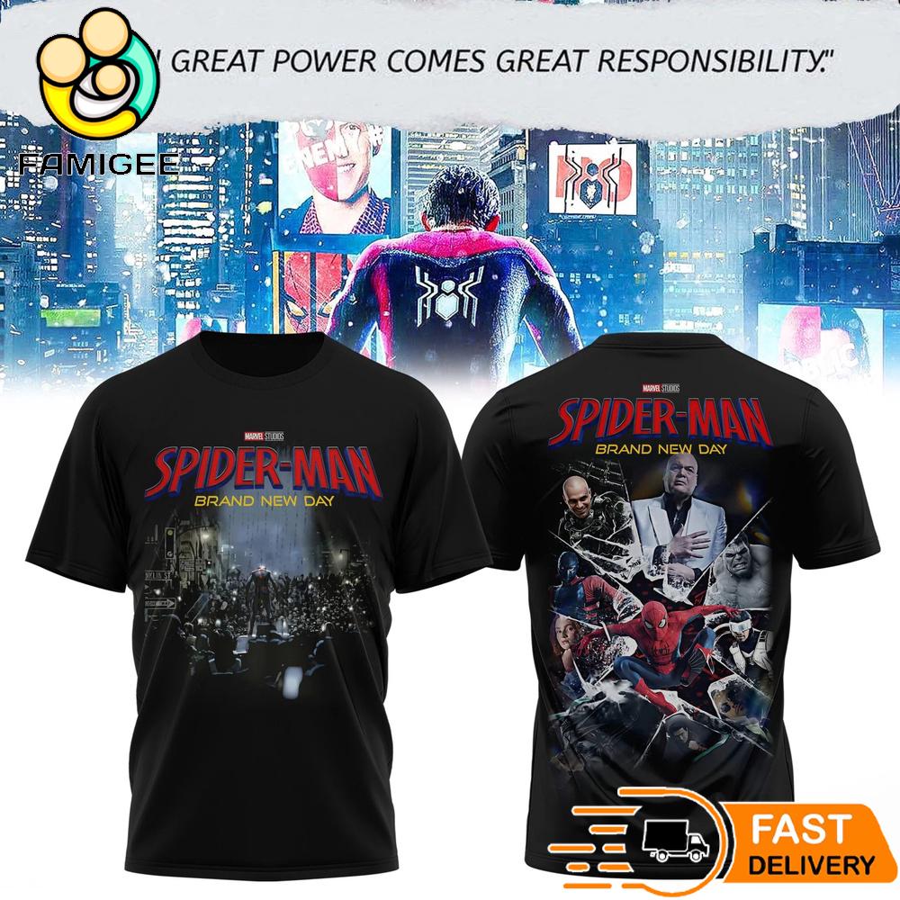Spider-Man Brand New Day Collection T-Shirt Marvel Superhero Graphic Tee Trends come and go, but true style lasts forever. The All Over Print Shirt is made for those who dare to break the mold. Forget about boring, repetitive designs, this is a shirt that speaks your personality: bold, unique, and effortlessly cool.