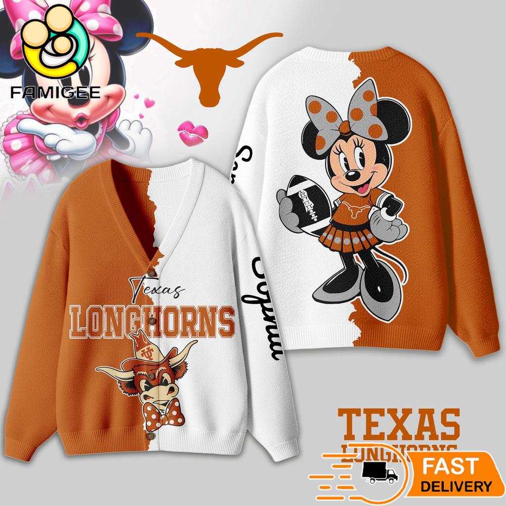 Photos Of Texas Longhorns Minnie Inspired Bow Cartoon Custom Name Cardigan Sweater