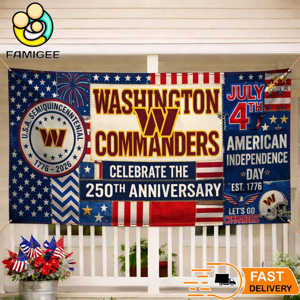 Washington Commanders Celebrate The 250Th Anniversary America Decoration Banner Show off your team pride and patriotic spirit with this bold Washington Commanders Decoration Banner, designed to celebrate the historic 250th Anniversary of American Independence (1776–2026). Inspired by the energy of Washington Commanders and the iconic celebration of Independence Day, this banner combines sports passion with classic red, white, and blue style.